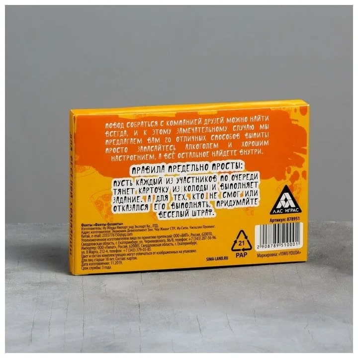 Купить игра для компании "фанты буханты" 20 карт от 100 руб. с доставкой до пункта выдачи в Кировграде. Интернет магазин ДекаМаркет. Оплата при получении.